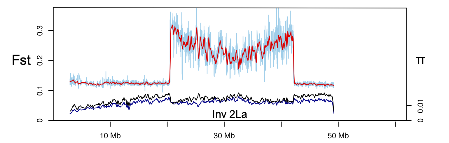 Using Anopheles gambiae as a model, I found that inversion 2La tracks Africa’s aridity gradient and forms a suspension-bridge pattern of differentiation, confirming that inversions capture locally adapted alleles by suppressing recombination.